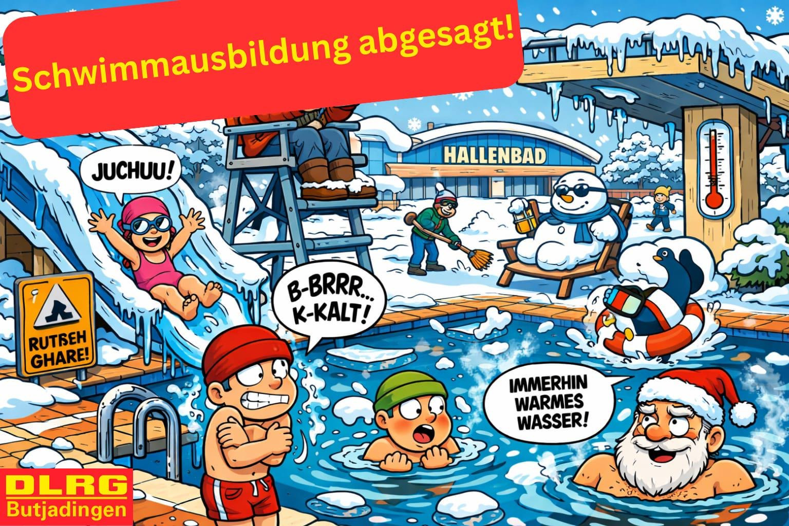 Leider melden wir uns mit nicht so tollen Neuigkeiten: Die Stadt Nordenham hat mitgeteilt, dass der Austausch der Sicherheitsbeleuchtungsanlage im Nordbad mehr Zeit als ursprünglich angenommen braucht. Stand heute ist das Nordbad bis zum 01. Februar geschlossen.