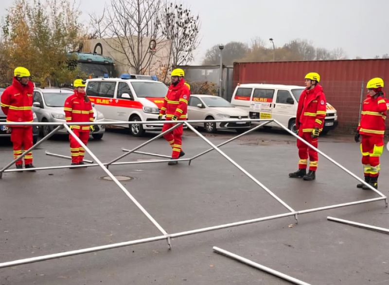 Neben Rechtsgrundlagen und dem Verhalten im Einsatz wurde auch die Zusammenarbeit mit anderen Hilfsorganisationen geschult. In der Praxis trainierten die Helfer den Aufbau von Zelten, den Umgang mit Handwerkzeugen, den Verbau von Sandsäcken und den Einsatz einer Netzersatzanlage.