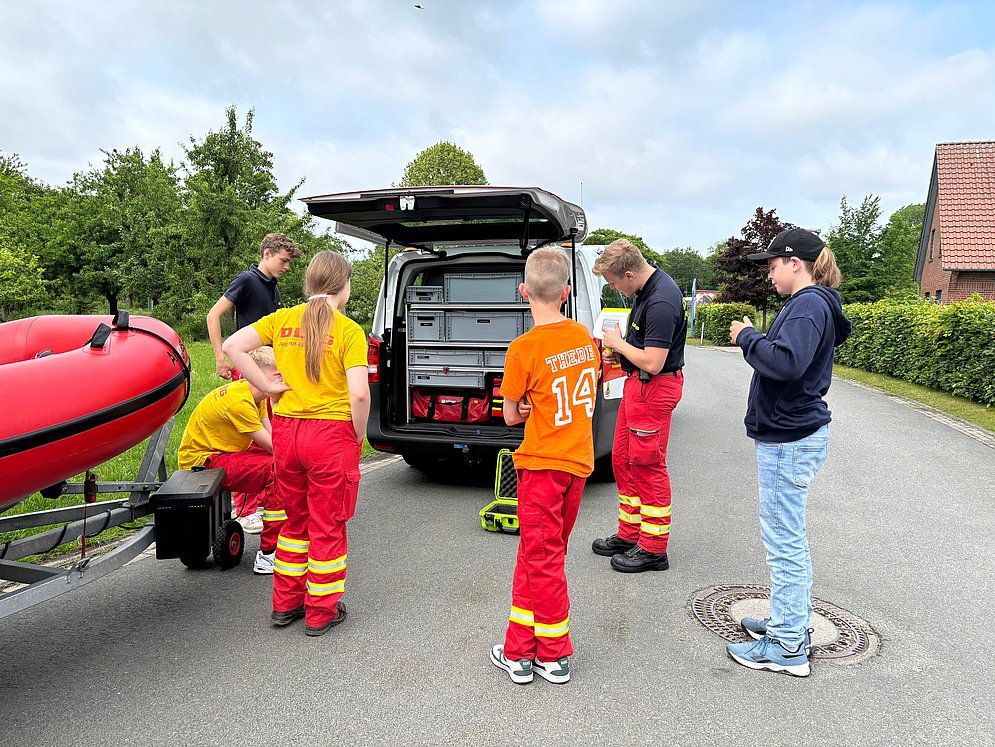 Gemeinsam haben wir uns mit den auf den Fahrzeugen verladenen Einsatzmitteln beschäftigt. Die Teilnehmer erhielten eine Einführung, wozu die verschiedenen Rettungsmittel dienen, wie man sie richtig bedient und wo sie im Fahrzeug verstaut sind. So konnten die neuen Mitglieder einen guten Überblick über das Material gewinnen, mit dem sie bei kommenden Veranstaltungen arbeiten werden.